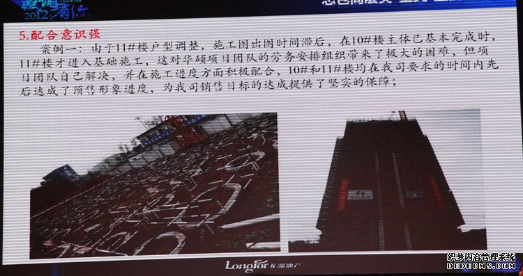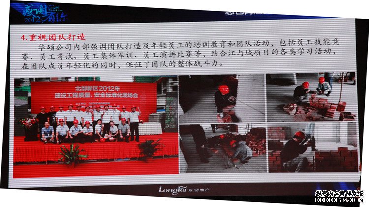 2013年1月8日下午,我司龙湖·江与城项目经理冉永中同志代表项目部参加了龙湖地产公司2012年度授奖仪式,司江与城项目团队被授予“2012年度优秀分供方银奖”。