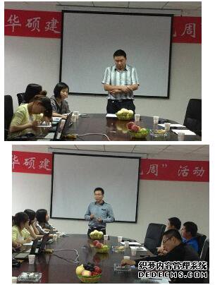 2013年7月10日下午16时,云南仙湖锦绣项目、民大项目在仙湖锦绣项目部会议室共同举行了华硕建设首届“企业文化周”第二阶段“文化宣讲” 活动。公司经营总监杨俊宁、财务管理部经理郑中华、经营管理部经理唐理红等出席。