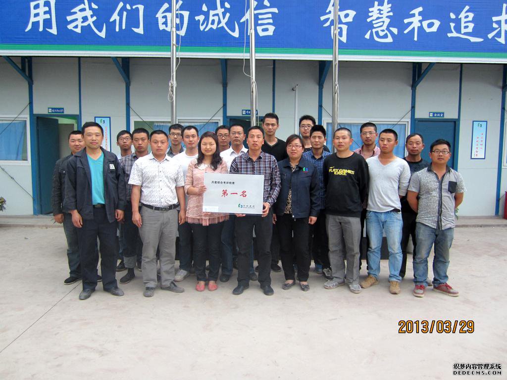 内江金科中央公园一期项目继1月月检综合排名获第一后,项目全体员工保持作风、狠抓不懈,在公司3月月度检查考评中再获第一,成为公司实施项目挂牌制后连续两月获此殊荣的项目。 望该项目继续努力,再创佳绩,公司其他项目也向该项目学习,提高项目管理、实体质量、安全文明施工水平,共创华硕建设辉煌!内江中央公园城项目全体员工英姿