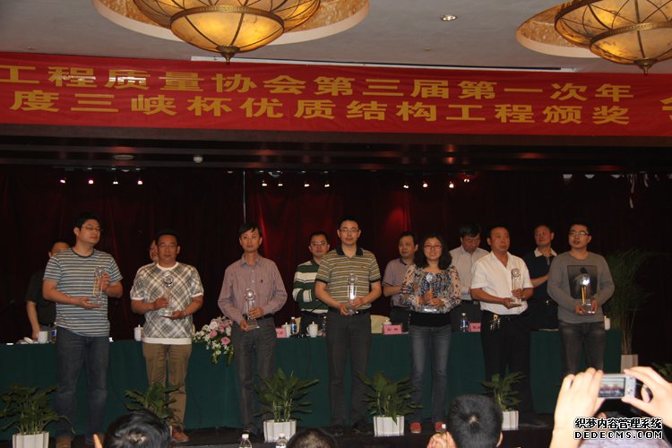 2011年度重庆市三峡杯优质结构工程表彰大会于4月27日在南方君临酒店隆重举行。由我司承建的重庆涉外商务区A区工程,由自主申报、经专家现场检查、复查及评审委员会评审、公示后获此殊荣,在136个获奖工程项目中排名第二。大会希望获奖单位及个人不断总结经验,进一步强化质量意识,加强质量管理,做好模范带头作用,为我市建设事业做出更大的贡献。