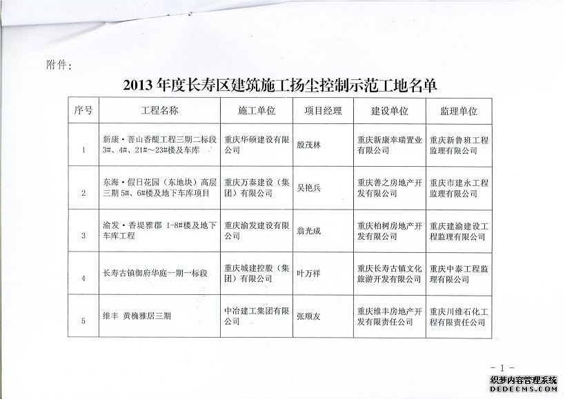 2013年11月27日,长寿区建委、环保局联合发文对荣获“2013年度长寿区建筑施工扬尘控制示范工地”的5个项目予以通报表彰,我司承建的新康•菩山香醍工程三期二标段位列其中,并独占鳌头。 荣誉源于持续努力、不断创新、携手共进,望项目部将再接再励,再创新誉!