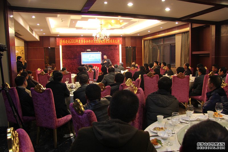 2014年1月11日下午16时30分,我司2013年度劳务分供方交流暨优秀班组颁奖大会在奥园·岭南汇隆重召开。出席会议的有:公司总经理袁昌勇、副总经理杨宏全、李伯勋,总经理助理钟均。四十多位班组代表受邀参会。部门经理廖胜唐理红、张洪,项目经理冉永中、李光贵、袁昌华、车军伟、谢泽木、曾伟、田雨,工程部安全主管周兵到会。会议由钟均主持。会上,李总首先就公司发展理念及状况做了详细介绍,用数据及事实向到场嘉宾展示了公司近年的发展及未来走向;随后,工程部经理廖胜和安全主管周兵分别就质量、安全两方面在现场操作中容易出现的问题做了讲解,希望能引起重视,加强改进,共同提升。接着,钟经理宣布了优秀劳务班组获奖名单,共有8个班组获奖,其中钢筋组何文华、砖工组古健、安装组张东分获一等奖,木工组秦大志和李元富、外架组左建和项跃兵、砖工组黄发成分获二等奖,袁总亲自为获奖优秀班组颁奖。最后,袁总发言。他指出当前我司无论从规模到组织结构都发生了巨大变化,而市场同样发生了巨大变化,所以需要我们双方携手共同改变,适应市场,做的好的方面保持,不好的方面提升。订单的集团化、区域化,保证了业务持续性,希望班组们将更多精力放在工作上,跟随华硕,同步提升,共享成果。