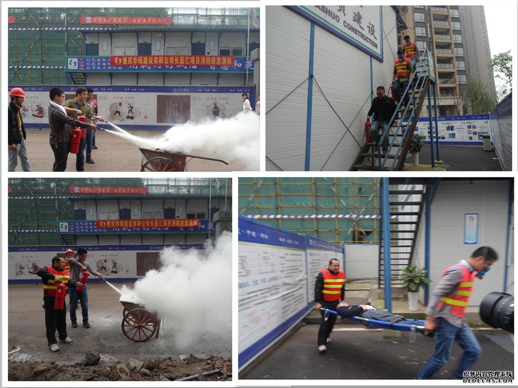 为切实加强日常消防安全工作,提高全员消防意识、增强安全防范与自救能力,我公司长嘉汇项目部于2014年4月10日下午,组织管理人员及部分班组联合举行了以“安全发展,预防为主”为主题的消防应急演练活动。演练前,项目部领导及安全部门共同结合项目部实际情况,认真细致地制定此次演练活动方案,明确了职责要求,为演练的成功举行提供了切实的保证。此次演练分为四个阶段,第一阶段由安全员向全体参加演练人员进行了消防安全知识宣贯,第二阶段为紧急疏散演练,第三阶段为伤员的处理,第四阶段为演示灭火器的正确使用方法。通过本次实地演习,进一步强化了员工消防安全意识,提高抗击突发事件的应变能力。