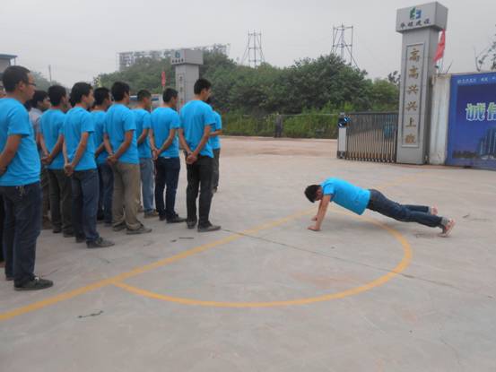 融创照母山项目自5月19日起实施为期一个月的军事化管理,至6月3日已坚持两周,过程中无论任何人任何事严格按制度执行,奖罚分明,效果显著。目前,大部分管理人员已经养成每天梳理每天工作内容的习惯,并对未完成的工作进行分析,找原因、找措施全力完成。这一习惯不仅有助于员工提升个人能力,更增强了项目团队战斗力和凝聚力。在实践中,军训队长任超、副队长曹金华、记录员李佳翼、施工负责人余世宗、项目经理袁摈通过不断讨论、改进并完善制度,每周根据管理人员汇报的工作内容完成情况评比一周之星,并派发纪念品,以资鼓励!另外,施工负责人余世宗表示不希望每天看到有人做俯卧撑,希望大家努力完成工作计划,不断提升,争做“周之星”、“月之星”、“年之星”,最后成为“华硕之星”。本周“周之星”是施工员高大江,工作完成情况90%,项目为他派发了纪念品,并希望他再接再厉,再创佳绩!