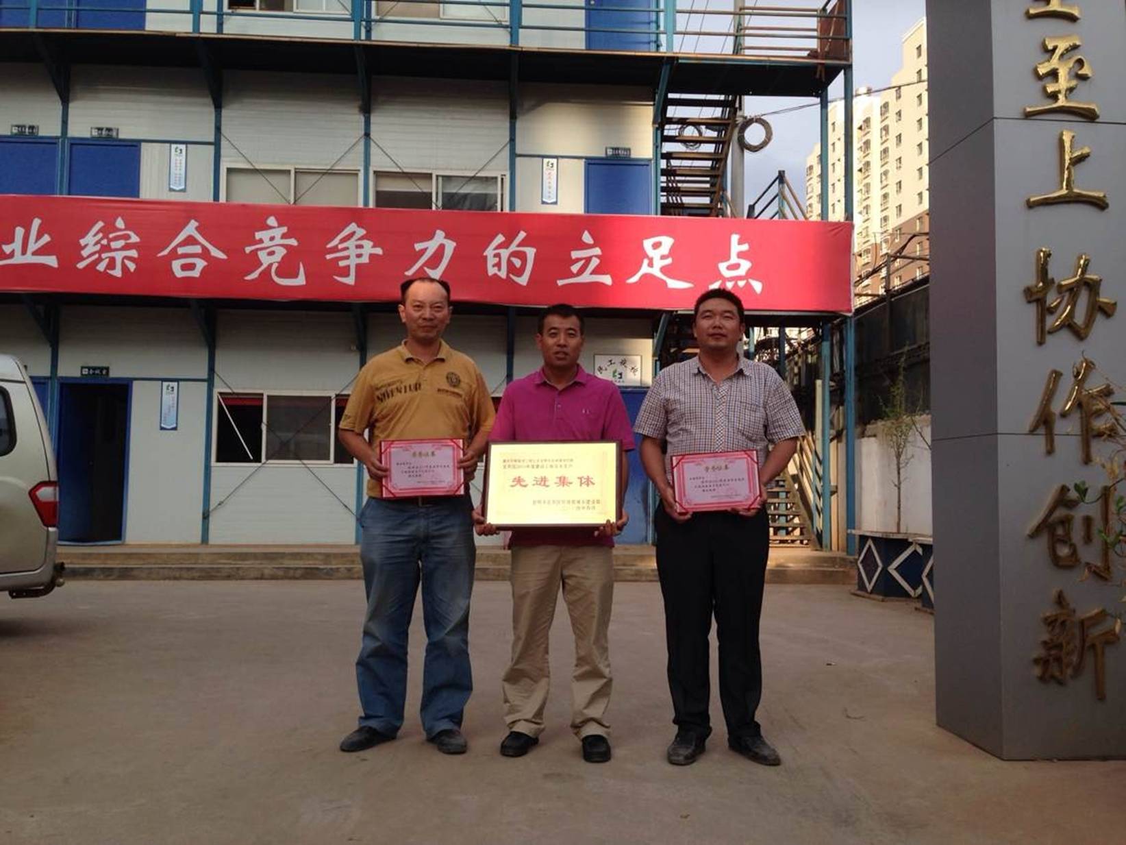 2014年6月3日下午18时,公司昆明水晶郦城项目发来喜报:该项目被评为2013年度昆明五华区建设安全生产“先进集体”,同时项目施工负责人王建波、安全员戴金然两位同志被评为“先进个人”。热烈祝贺水晶郦城项目获此称号,这是该项目全体同仁齐心协力的成果。希望项目部保持成绩,百尺竿头更进一步,为公司及个人挣得更多荣誉,在云南打响华硕品牌,展示精品形象,树立良好口碑。
