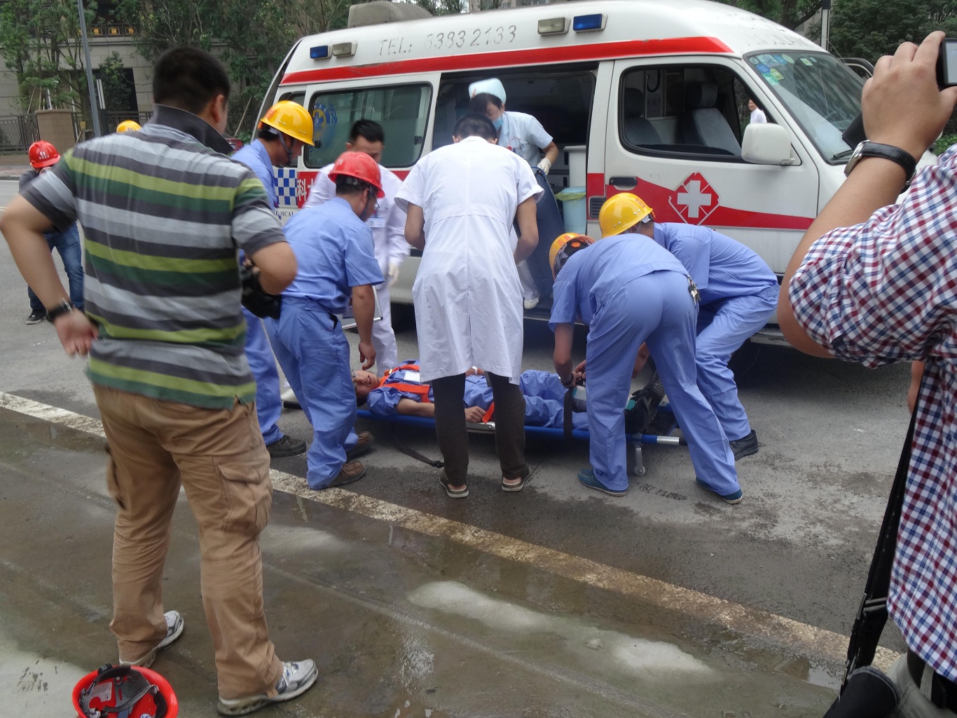 2014年6月12日上午9时,南岸区“建筑行业两防应急救援演练”活动在公司招商长嘉汇项目施工现场准时开始。该活动由南岸区城乡建设委员会组织,由公司招商长嘉汇项目部具体实施。南岸区建委、区安监局等建设行政主管部门领导莅临现场指挥演练活动,重医附二院医护人员、项目部全体员工共同参与救援演练,南岸区电视台、南岸报、重庆日报等新闻媒体到现场对本次演练予以报道。演练结束后,区建委领导对本次“高坠事故”应急救援演练给予充分肯定,认为演练程序清晰、人员分工明确、救援及时,达到了应急演练的预期目标。要求项目部在后续施工过程中,继续加强现场安全生产的防护工作,保持现场标准化文明施工形象
