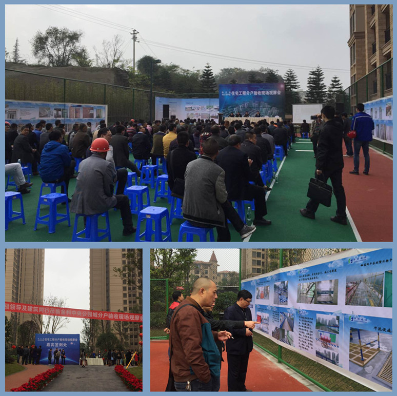 2015年11月6日,由内江市住房和城乡建设局组织开展的全市住宅工程质量分户验收现场观摩会在我公司内江金科中央公园城项目隆重举行。来自内江市三区三县建设行政主管部门及市区在建住宅工程建设单位工程主管、施工单位项目经理、监理单位总监共计150余人参加了此次观摩会。在观摩会现场,观摩人员实地察看了中央公园城房屋实体质量、功能性检测标识成果,并听取了项目部对该工程分户验收的组织实施和落实情况的详细介绍。通过观摩会,各单位对我公司分户验收工作质量、工作效果、工作作风均表示高度赞赏。同时对该项目工程品质作了充分肯定,一致认为我公司分户验收工作已走在内江建筑业前列,具有较高的学习借鉴价值,值得业界推广学习!