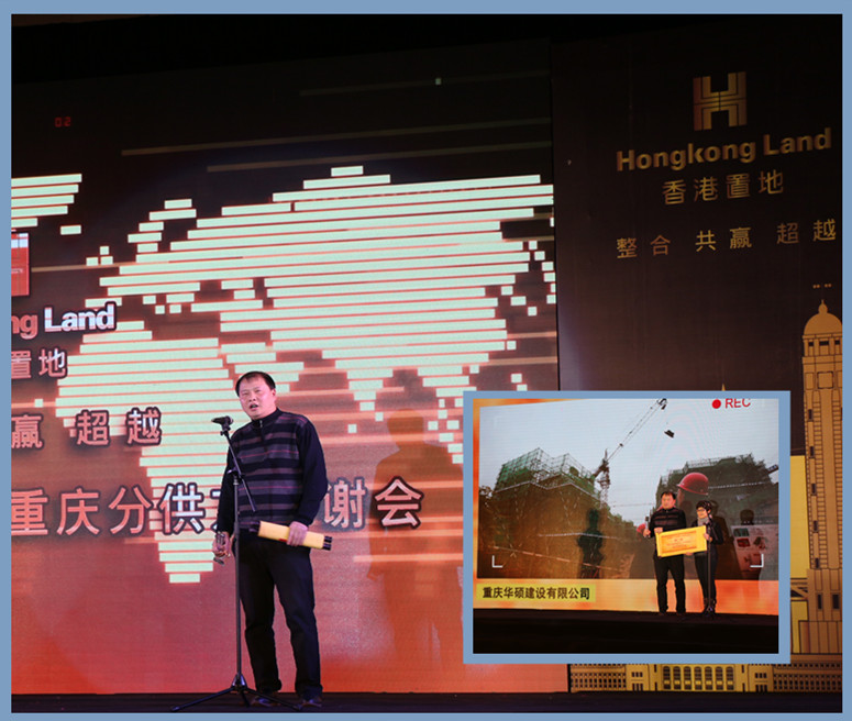 2016年1月26日,我公司工程总监车军伟、项目经理冉永中、罗中辉受邀参加了香港置地2015年度重庆优秀分供方答谢会。我公司凭借江与城06-4项目荣获其“2015年度优秀分供方” 第二名,江与城项目经理冉永中代表领奖。江与城06-4项目,由香港置地和龙湖集团两大企业合作开发,目前已竣工交房。该项目作为公司核心团队,在建期间始终坚持严谨作风,以稳定的实体质量,满足了两大一流企业的各项管理要求和目标。多次接待来自市区各级单位、业界同仁的观摩交流并获赞誉。顺利通过重庆市“三峡杯”优质结构和安全文明工地验收,同时以较高满意度、极低报事率交房。工期管理、成本管理、品质管理,是所有项目值得借鉴学习的典范。未来华硕人势必坚定铁军意志,努力拼搏,坚持以最优质的工程,最高效的项目管理,创造更多价值,赢得更多荣耀