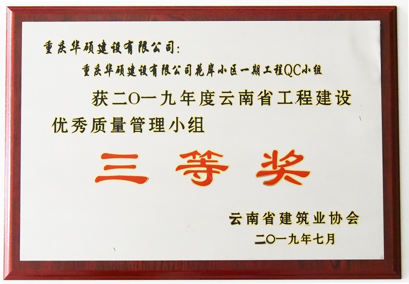 2019年度云南省优秀质量管理小组三等奖